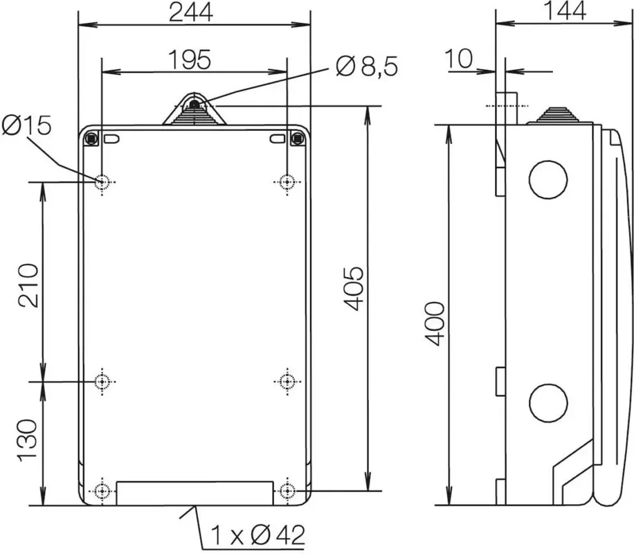 Hersteller:ABNBezeichnung:Hausanschlusskasten NH00, 2 x 10-50qmmTyp:HS434CMontageart:AufputzArt der Abdeckung:DeckelAusführung Deckel:geschlossenArt der Tür:EinzelTransparenter Deckel/Tür:jaMit Schloss:neinNennstrom (In):125 AHöhe:415 mmBreite:245 mmTiefe:144 mmEinbautiefe:415 mmInnentiefe:245 mmMaterialstärke Gehäuse:2 mmMaterialstärke Tür/Deckel:2 mmFarbe:grauRAL-Nummer:7035Anzahl der Öffnungen für Flanschplatten:1Anbaumöglichkeit:neinAnzahl der Leitungseinführungen:4Werkstoff des Gehäuses:KunststoffOberflächenschutz:unbehandeltMit Montageplatte:neinGeeignet für Außengebrauch:jaGeeignet für Blitzschutz:neinSchutzart (IP):IP54Schutzart (NEMA):sonstigeSchutzklasse:IISchlagfestigkeit:IK10Funktionserhalt:ohneDeckel mit Überdruckentlastung:nein