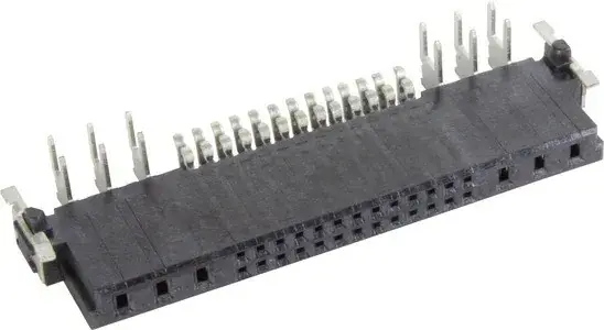 Federleiste, Reflowlötanschluss (SMT), Kontakte: 32, gewinkelt, Kupferlegierung, Edelmetall über Ni steckseitig, Sn über Ni anschlussseitig, Anforderungsstufe: 1, Liquid-crystal polymer (LCP), schwarz