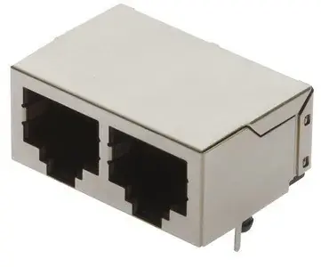 Buchse, RJ45, gewinkelt, 2 Ports, Wellenlötanschluss, Bemessungsstrom: 1,5 A, Kontakte: 8