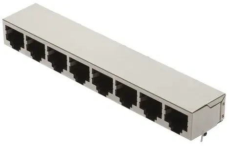 Buchse, RJ45, gewinkelt, 8 Ports, Wellenlötanschluss, Bemessungsstrom: 1,5 A, Kontakte: 8