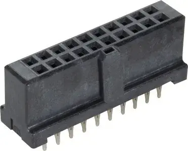 Federleiste, Einpressanschluss, Bemessungsstrom: 1 A, Kontakte: 20, gerade, Kupferlegierung, vernickelt anschlussseitig, Au über Pd/Ni steckseitig, Anforderungsstufe: 2, Liquid-crystal polymer (LCP), schwarz