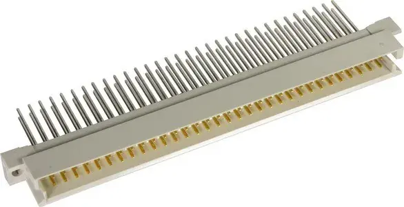 Messerleiste, Wickelanschluss, Bemessungsstrom: 2 A, Kontakte: 64, gerade, Kupferlegierung, Edelmetall über Ni steckseitig, Ni anschlussseitig, Anforderungsstufe: 2, nach IEC 60603-2, Kodierung: Kodierung mit Kontaktverlust, Leiterplattenbefestigung: mit Flansch, Thermoplastischer Formstoff, glasfaserverstärkt, RAL 7032 (kieselgrau)