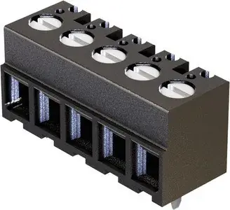 Printklemme, horizontal, Schraubanschluss, Reflowlötanschluss (THR), Bemessungsstrom: 12 A, Kontakte: 4, Kupferlegierung, Sn über Ni steckseitig, Sn über Ni anschlussseitig, Polyamid (PA), Polyphthalamid (PPA), schwarz