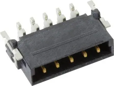 Messerleiste, Reflowlötanschluss (SMT), Bemessungsstrom: 21 A, Kontakte: 5, gewinkelt, Kupferlegierung, Edelmetall über Ni steckseitig, Sn über Ni anschlussseitig, Anforderungsstufe: 1, Liquid-crystal polymer (LCP), schwarz