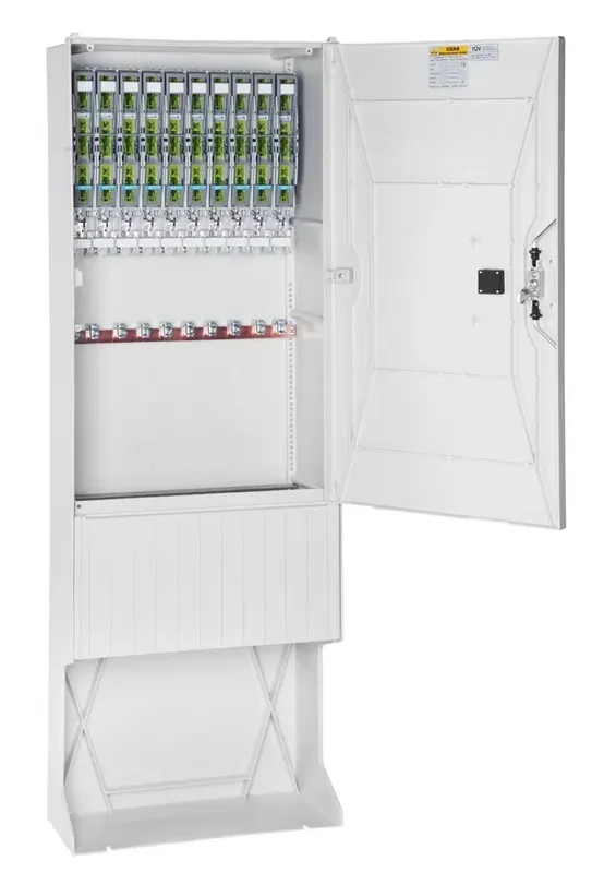 Kabelverteilersäule, Sammelschiene 30×5, 4-pol. (100mm) mit 10xNH00 Sicherungslastschaltleisten